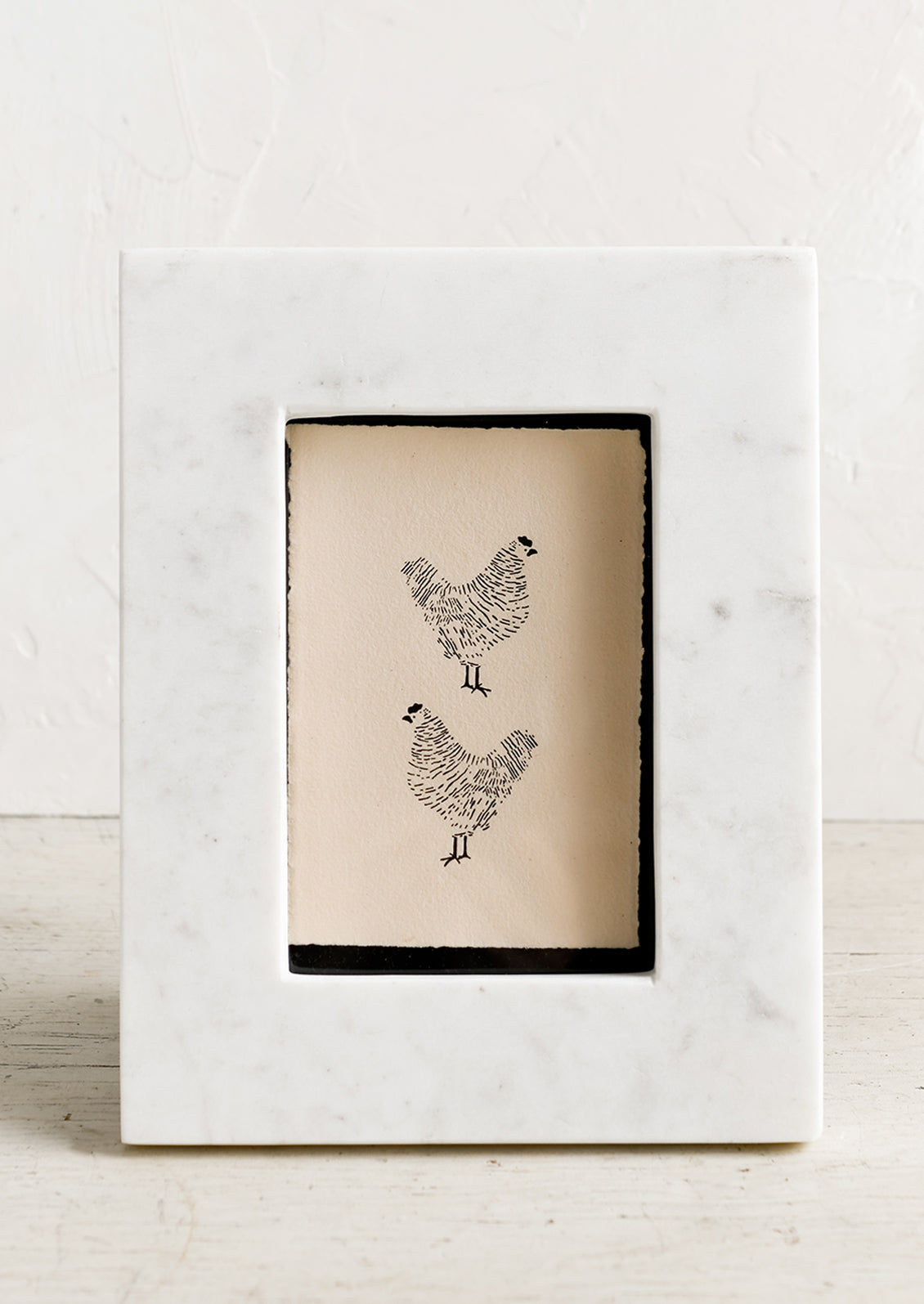 Crafted in solid white marble with a subtle shimmer, this weighty picture frame creates a classy border around a treasured photograph.