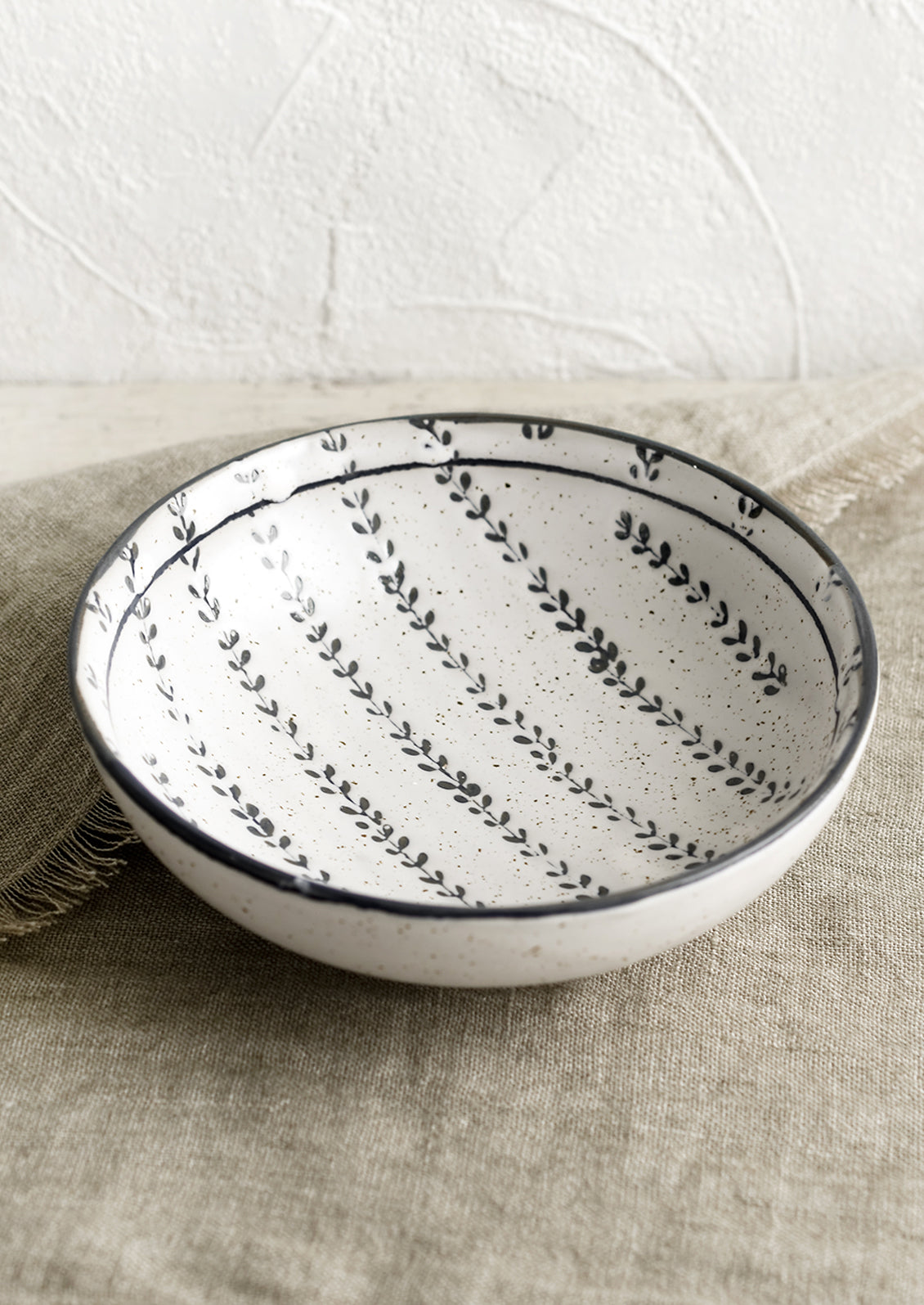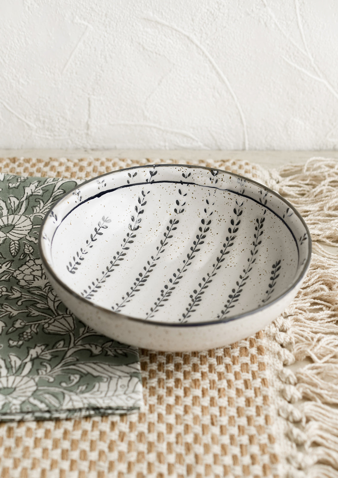 A charming motif in black and white gives laidback elegance to this speckled ceramic bowl, the perfect size for cereal, soup or rice.