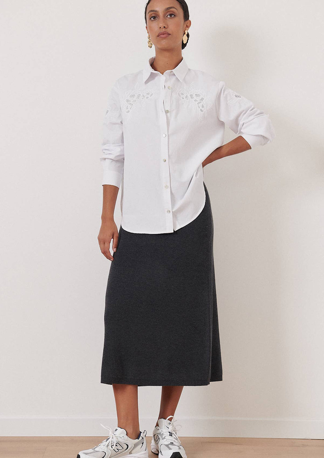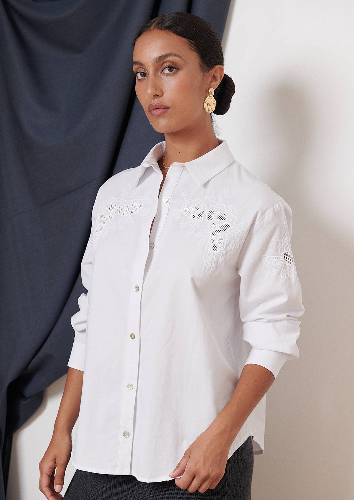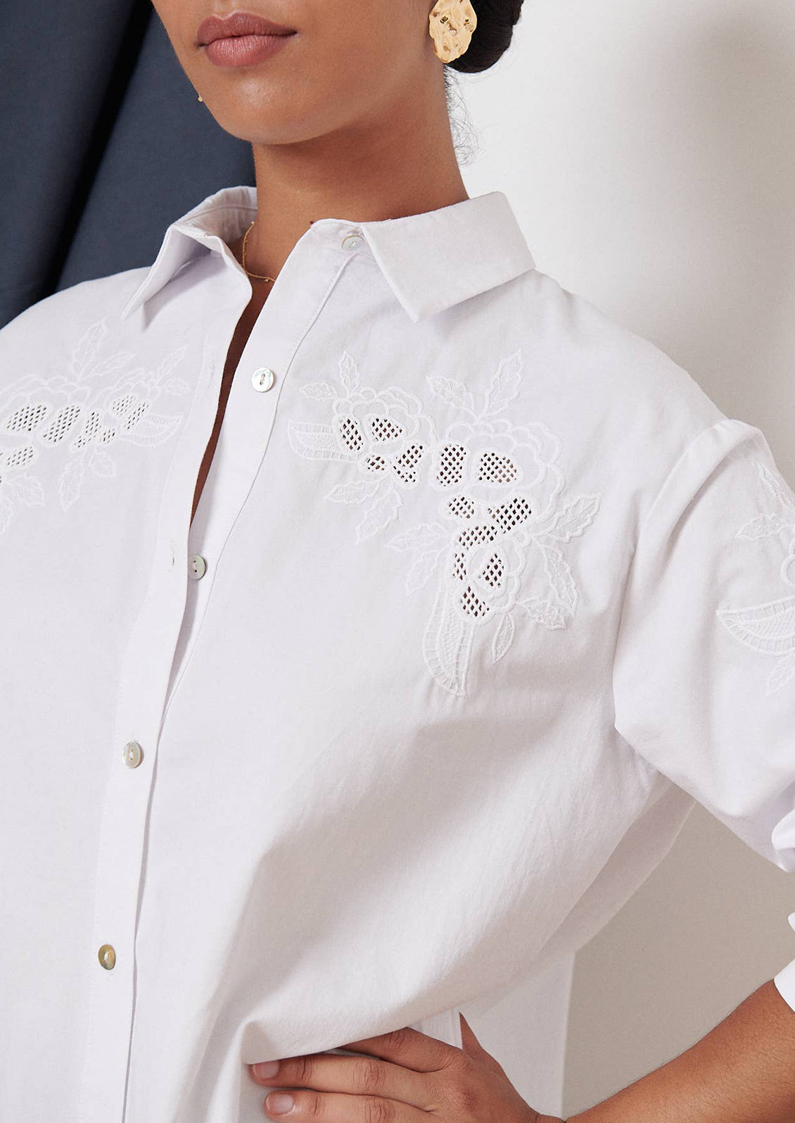 Crafted in a thick, structured cotton (in a perfect weight for cooler months), this embroidered shirt shows off Western-inspired detailing balanced with timeless femininity.