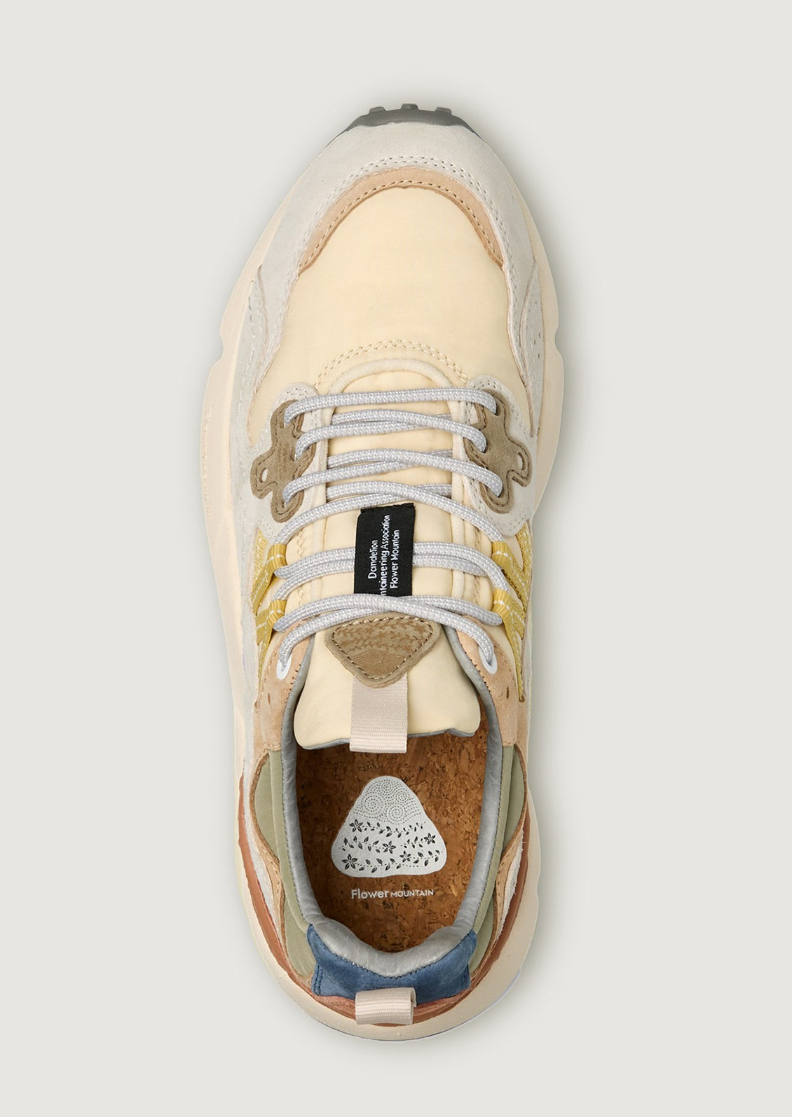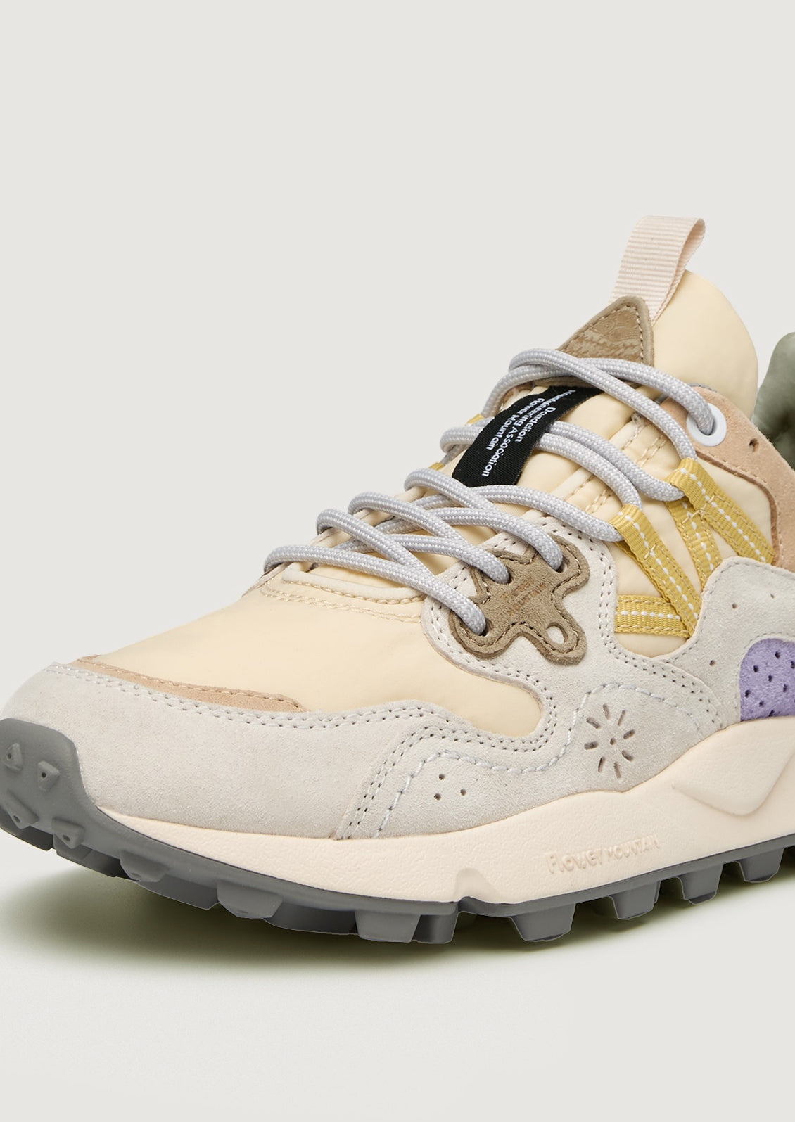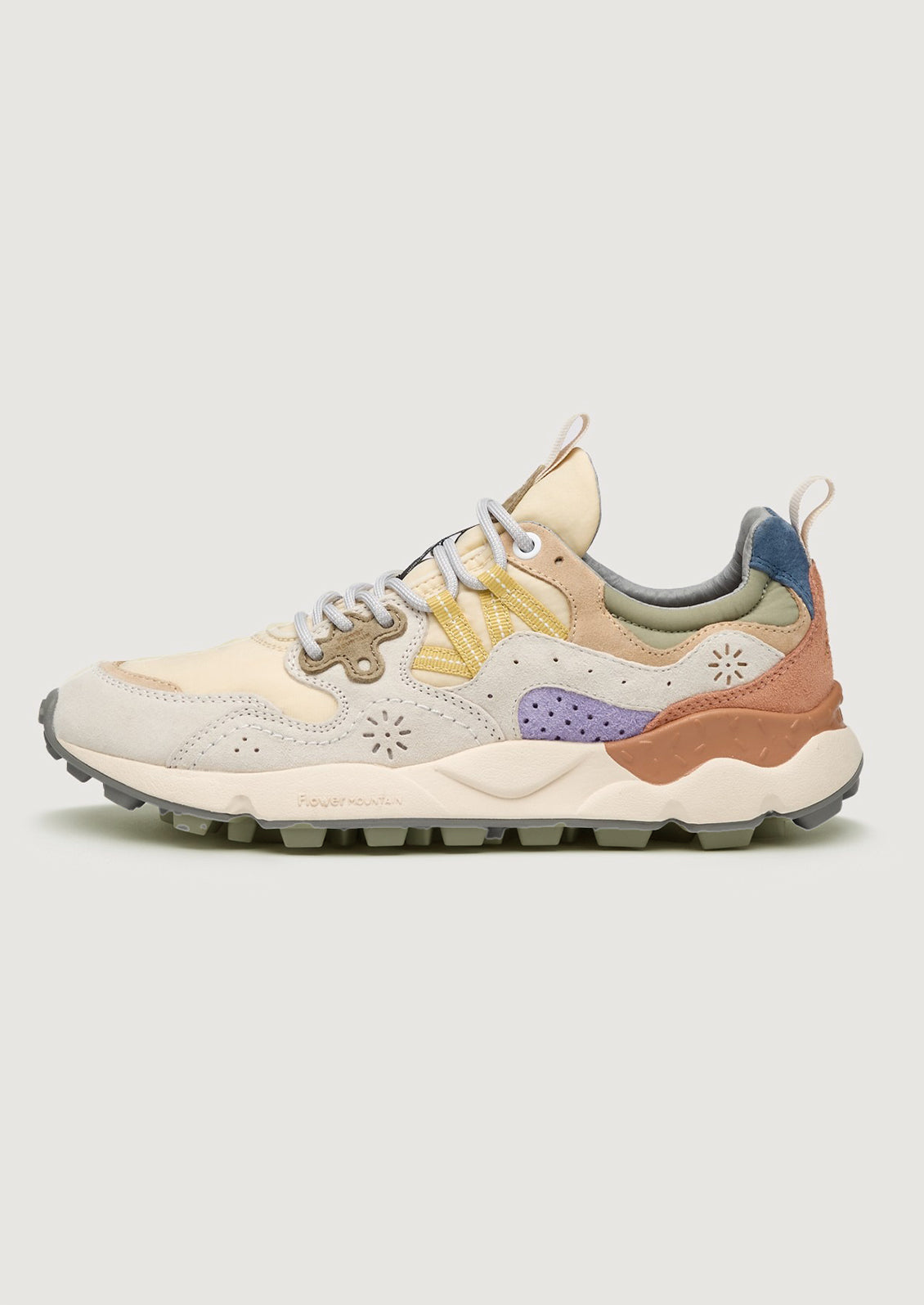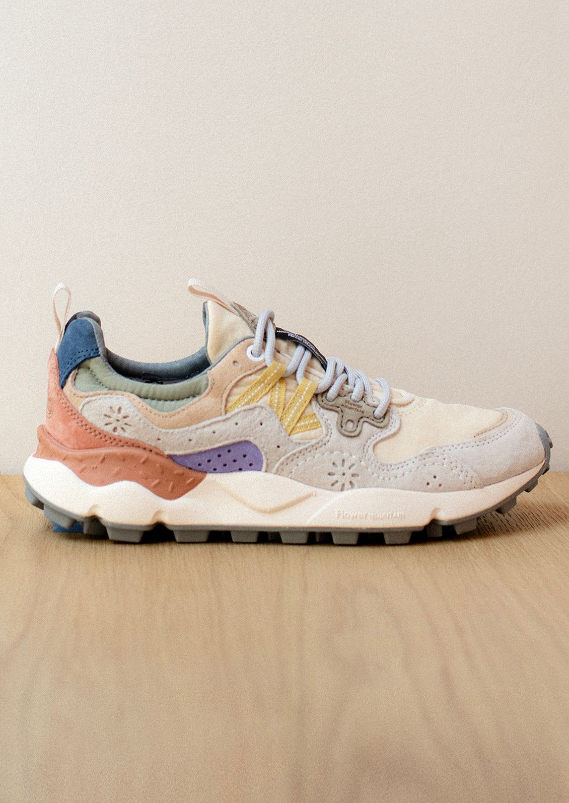 Flower Mountain's Yamano sneaker combines active details with a cool aesthetic, perfect for the country and city alike. The technical fabric upper features suede details with the distinctive overlapping construction, trekking laces and floral shaped eyelets. The sole is made of ultra-light rubber, while the antibacterial natural cork insole protects the foot while ensuring all day comfort. While we've listed women's sizing, the Yamano 3 Uni is a unisex style.
